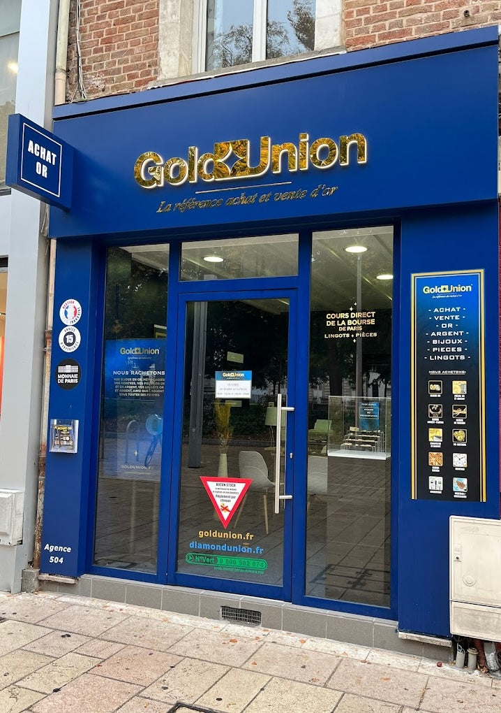 En vous adressant à notre équipe de l’agence d’Amiens, spécialisée dans l’achat d’or et d’argent, vous avez la garantie d’échanger avec des spécialistes, mais vous pouvez également profiter de tous les avantages Gold Union via notre site e-commerce. Que ce soit pour la vente ou l’achat d’or, Gold Union s’engage à vos côtés pour vous fournir : · Une livraison sécurisée : Gold Union maîtrise et contrôle l’ensemble du processus de commande et de livraison. En plus, toute marchandise envoyée est assurée à 100 %, pour que votre expérience d’achat ou de vente se déroule dans les meilleures conditions. Retrouvez votre livraison à domicile en 5 à 7 jours ; · Nos clients sont satisfaits et nous ont élus Meilleur prix du marché. En fonction du cours de l’or, nous proposons un prix juste ; · Aucune surprise ! Vous retrouvez nos conditions sur notre site ou en agence. Tous les frais sont expliqués et détaillés et aucuns frais supplémentaires ne vous seront demandés (les prix incluent les frais de scellages) ; · Tous nos produits sont certifiés. Lingots ou pièces, or ou argent, nous travaillons avec des partenaires bancaires de toute l’Europe.