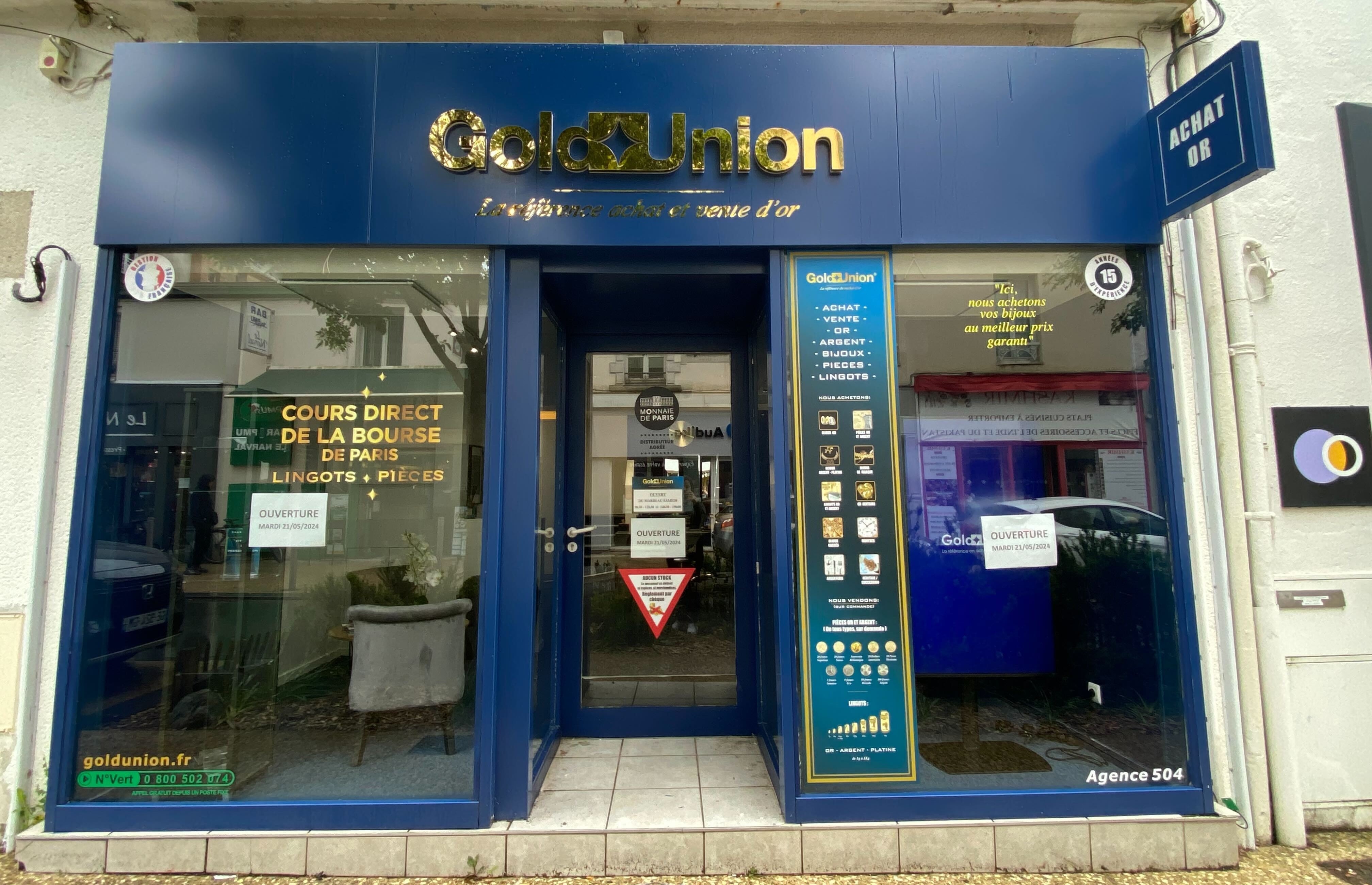 Même si vous pouvez tout à fait venir nous rencontrer sans rendez-vous, vous pouvez aussi prendre rendez-vous avec l’un de nos spécialistes gold Union en nous appelant au préalable. Pour cela, composez le numéro de téléphone suivant : 02 51 06 13 78. Nous vous accueillons du mardi au samedi, de 9h30 à 12h30 et de 14h30 à 19h. Une ambiance chaleureuse et décontractée vous attend. Vous vous sentirez tout de suite à l’aise pour poser toutes vos questions ! Pour prendre rendez-vous sur Internet, complétez le formulaire de contact mis à disposition sur notre site. La devanture couleur bleu foncé de notre agence spécialisée dans le rachat or à La Roche-sur-Yon se voit de loin. Vous pourrez facilement vous garer à proximité. Si c’est en bus que vous venez nous voir, descendez à l’arrêt Faouédic ou Alsace Lorraine. Adrien, notre responsable d’agence, ainsi que toute l’équipe, seront ravis de vous accueillir à la boutique pour vous présenter une large gamme de produits.